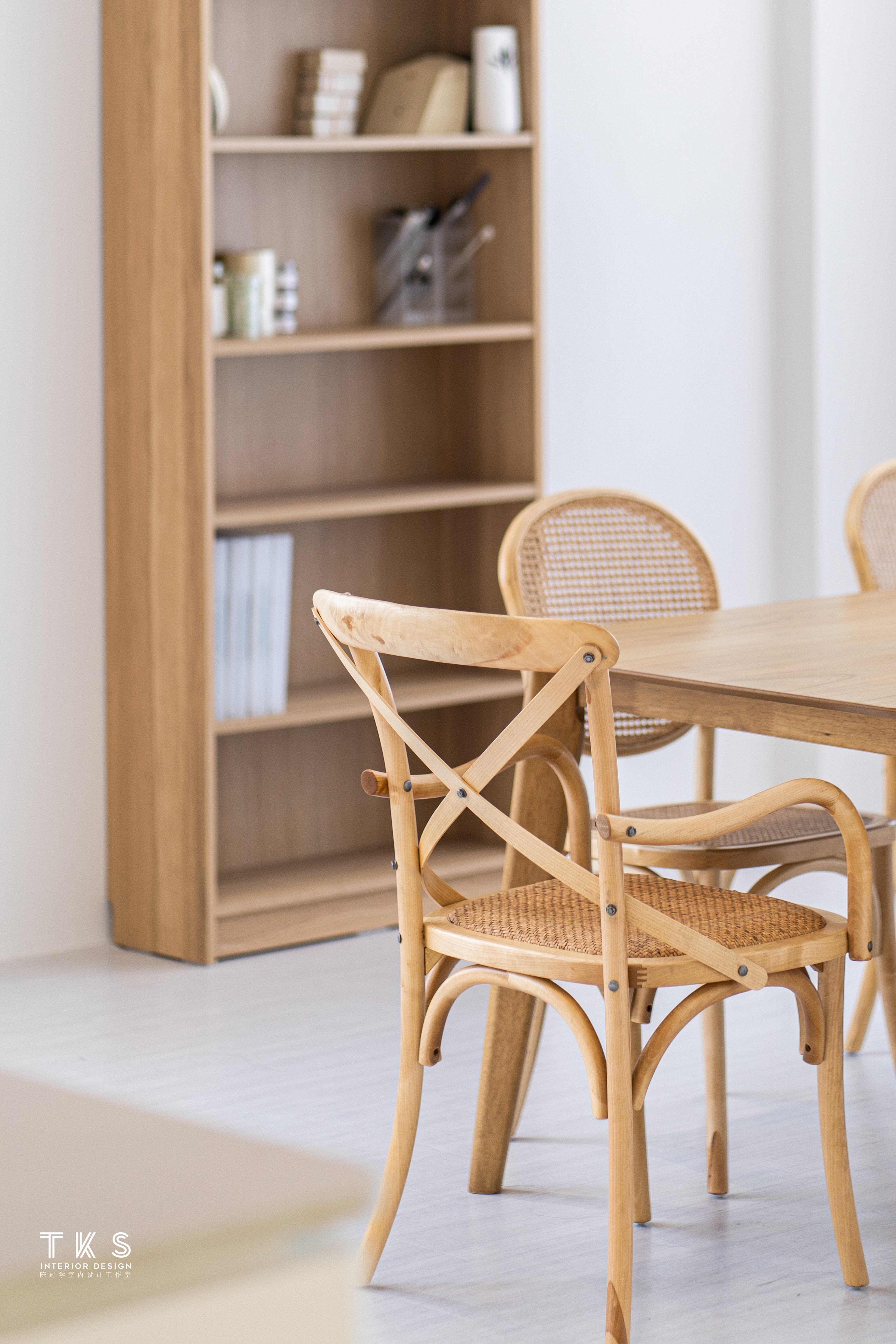Clearly, design elements are curated thoughtfully with the space composition. Formed in an open-plan layout, patrons are welcomed to experience the divided space of the display area, exhibition and photography area. On the contrary, the working space and storage room are meant for daily operations. Shades of rattan furniture is used as the main element instilling warmth into the calm surrounding.